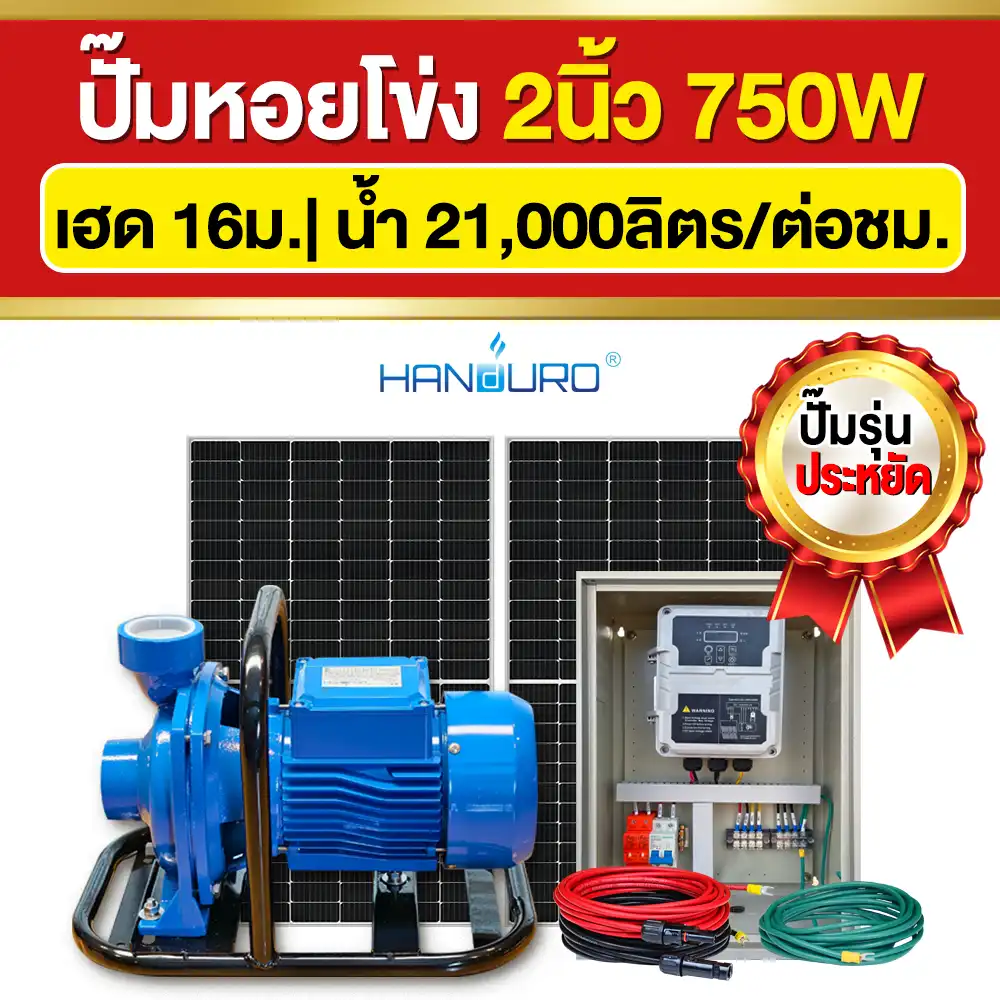 ปั๊มหอยโข่งโซล่าเซลล์ รุ่น 2นิ้ว 750W 1แรงม้า | เฮดปั๊ม 16ม.| น้ำ 21,000ลิตร/ชม.| Handuro | โปรถูกสุด! จากร้านดัง! พี่หมีโซล่าเซลล์